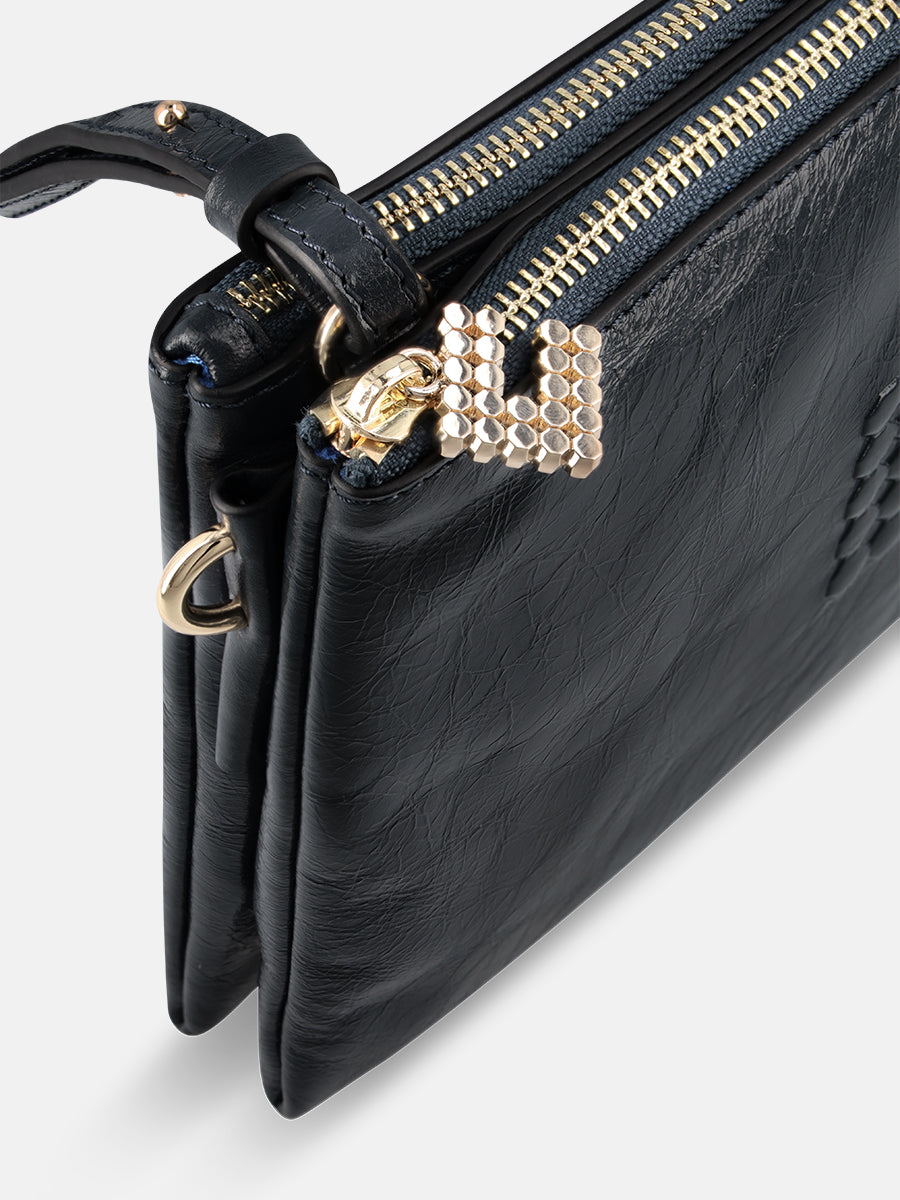 Designed for smart organisation, the Clyde features two zipped compartments that keep essentials neatly separated and easy to access. Despite its slim profile, it offers just the right amount of space for daily must-haves. Wear it crossbody with the detachable adjustable strap or carry it as a chic clutch for evenings out.