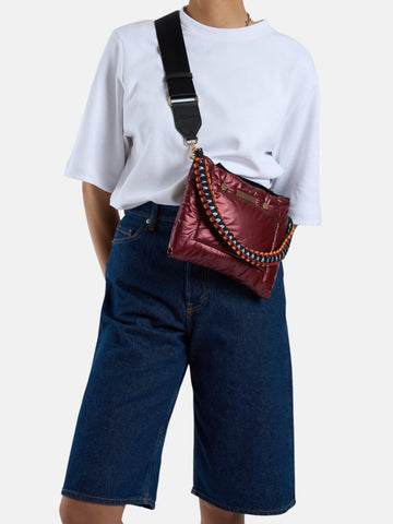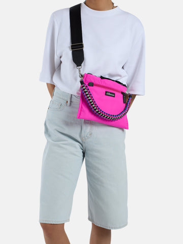 HYBRID was designed to suit your needs and desires. This reversible pouch can be worn across the chest or on the shoulder thanks to a colourful braided strap. It provides a zipped pocket (on the inside or on the outside depending on whether you wear the bag upside down or not). This two-in-one item is perfect to add variation to your daily life.
