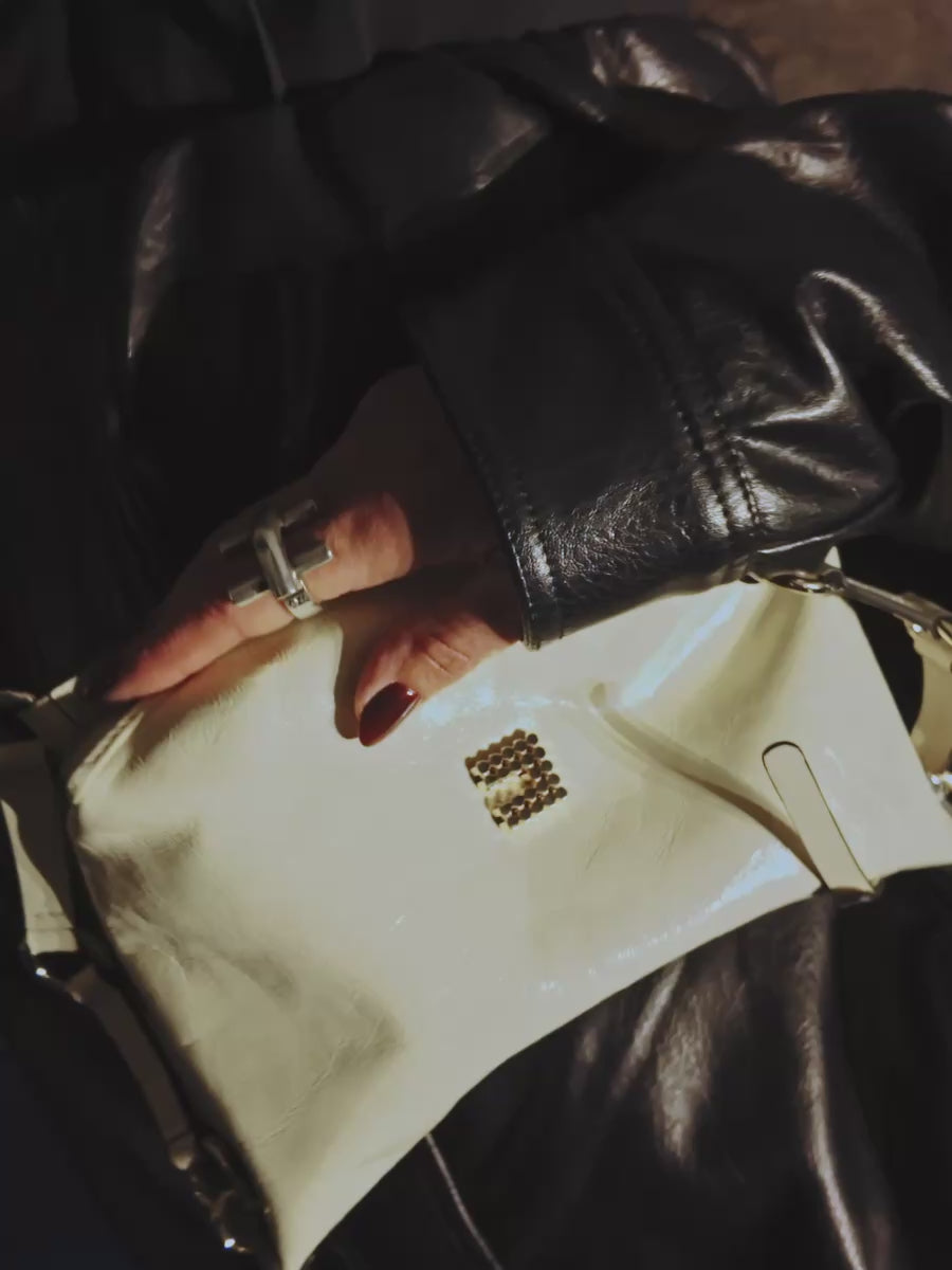Soft, compact and effortlessly polished, the Charly Mini Crinkle Patent brings a glossy, modern twist to understated elegance. Its clean silhouette and distinctive crinkled patent texture offer a sleek shine that transitions seamlessly from day to night.