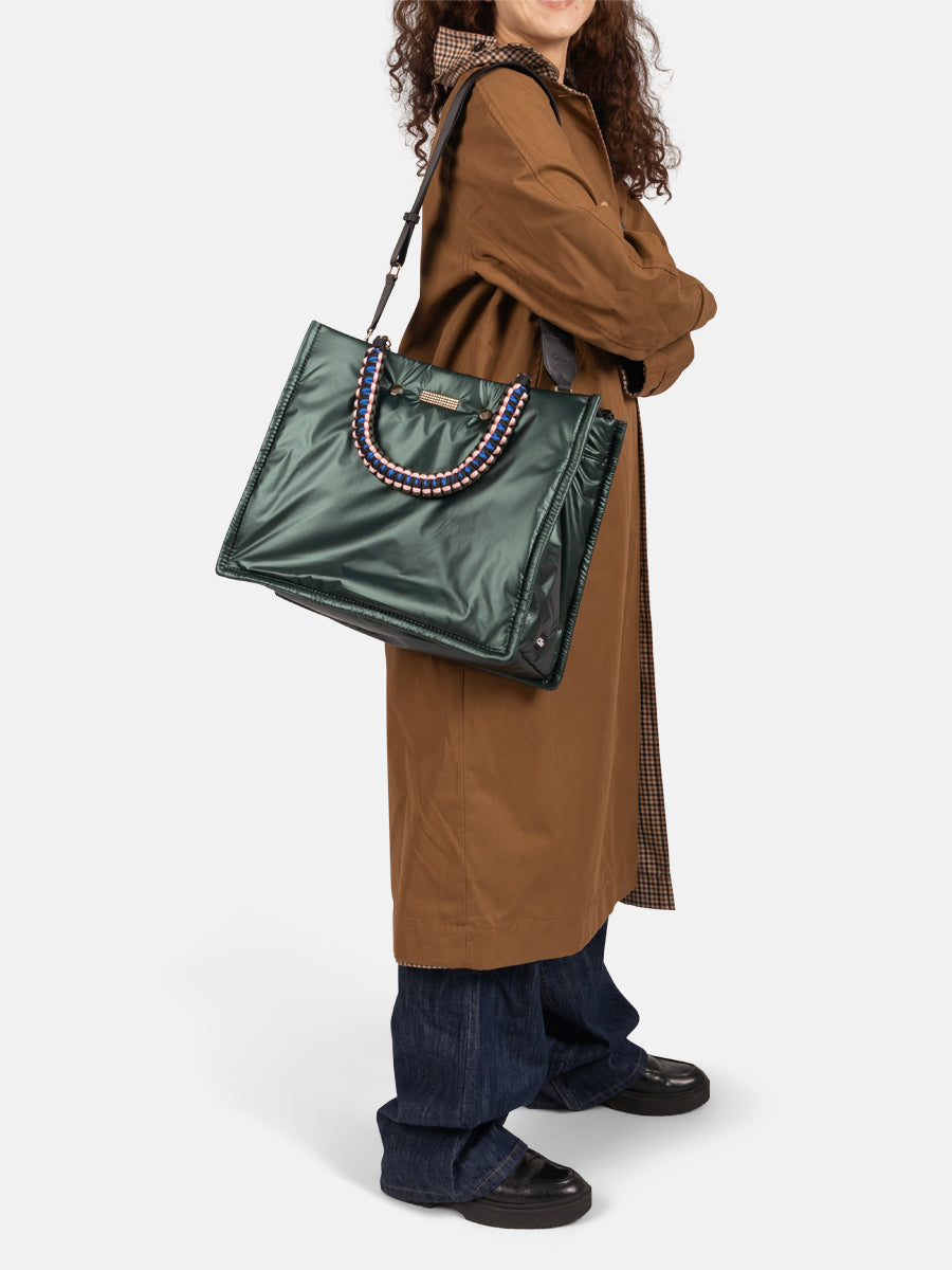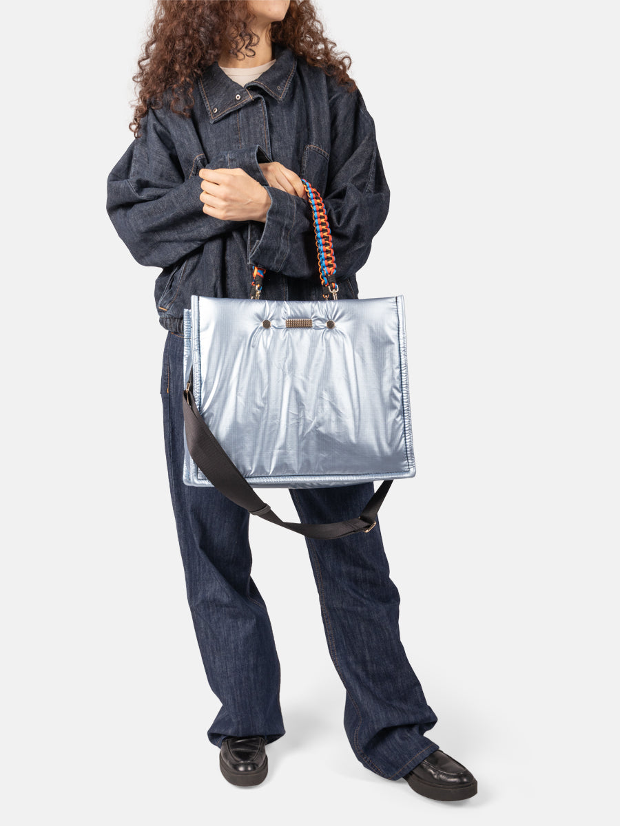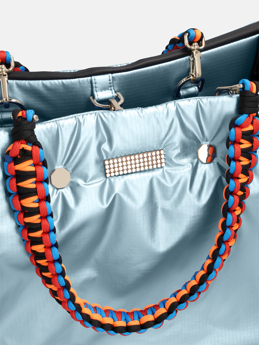Looking for the perfect multipurpose bag? The FLEX is here! Thanks to its size and volume, it is a perfect carry-on baggage for your weekend away, but we also love to use it as a gym bag or an original briefcase. In a nutshell, the FLEX becomes the bag we need to meet our women's needs. On the outside, the bag has a zipped side pocket to slip in a Laptop 13'. On the inside, there's a large compartment (fit for laptop 15') with three pockets, including one for a bottle, plus a zipped pocket. The FLEX comes with two removable colourful nylon straps, and one adjustable black strap.