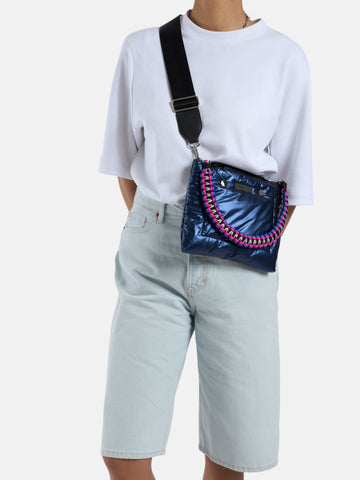HYBRID was designed to suit your needs and desires. This reversible pouch can be worn across the chest or on the shoulder thanks to a colourful braided strap. It provides a zipped pocket (on the inside or on the outside depending on whether you wear the bag upside down or not). This two-in-one item is perfect to add variation to your daily life.