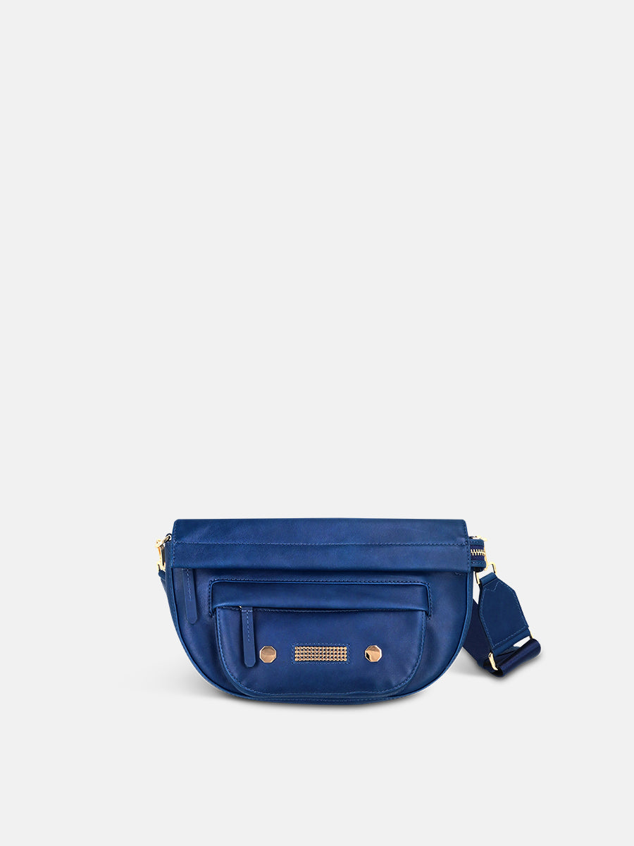 With its resemblance to a belt bag, the NEPTUNE is a city girl's best friend. Intentionally chic and sporty, this bag is worn crossbody or over the shoulder thanks to its adjustable strap. More voluminous than a banana bag, it offers all the space you need to carry your essentials, in town as well as to the office. The NEPTUNE has a small zip pocket on the front to slide in your telephone or keys, as well as an inner zip pocket to stash all your secrets. Crafted in very high-quality leather and embellished with brass studs, this bag is bursting with charm!