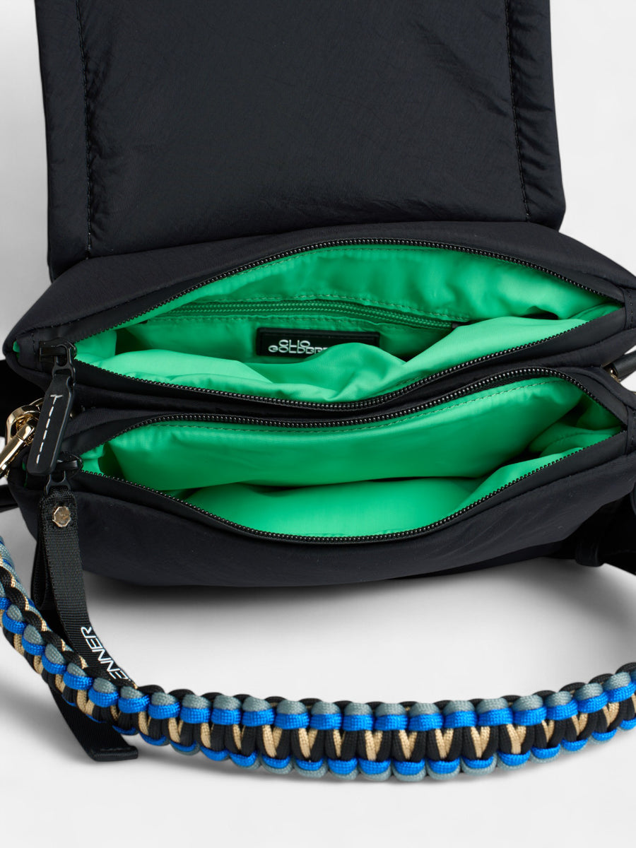 Light as air and full of energy, this bag may be small, but it keeps up with every beat of your day. With just enough space for your essentials, it's ideal for quick errands, evening strolls, or spontaneous detours. Carry it crossbody with the wide, adjustable strap for all-day comfort, or switch it up with the colourful woven strap for a playful twist.